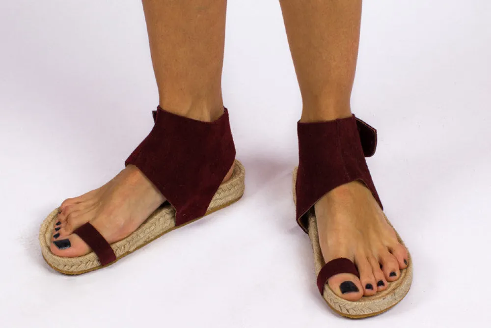Abarca Shoes Sandalias Yute^Sandalias Piel Ibiza Granate